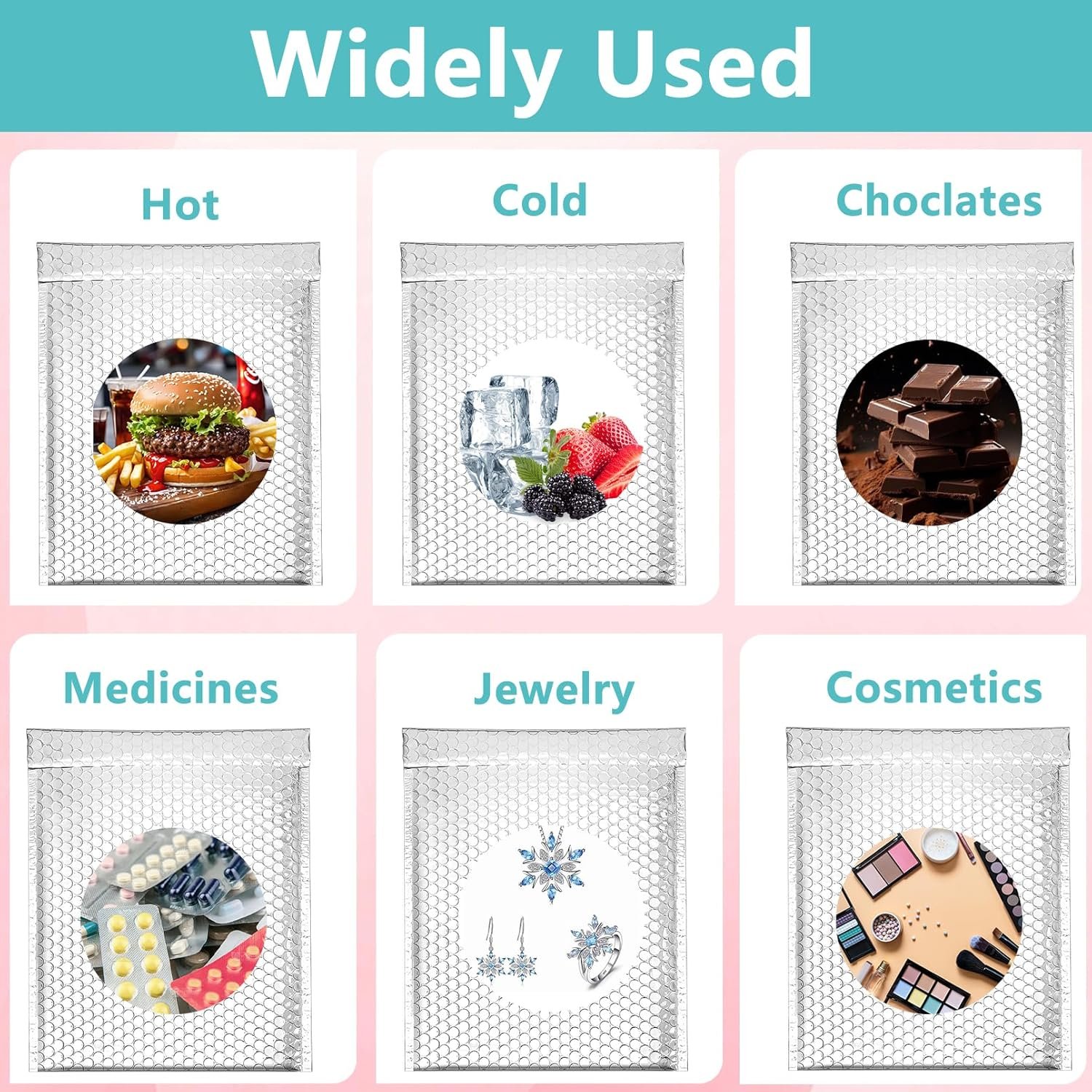 - Cold Shipping Needs: Insulated envelopes for cold shipping needs. Outer Metallic foil helps to maintain the desired cold temperature and the inner thick bubble padded layer protects from transit damage