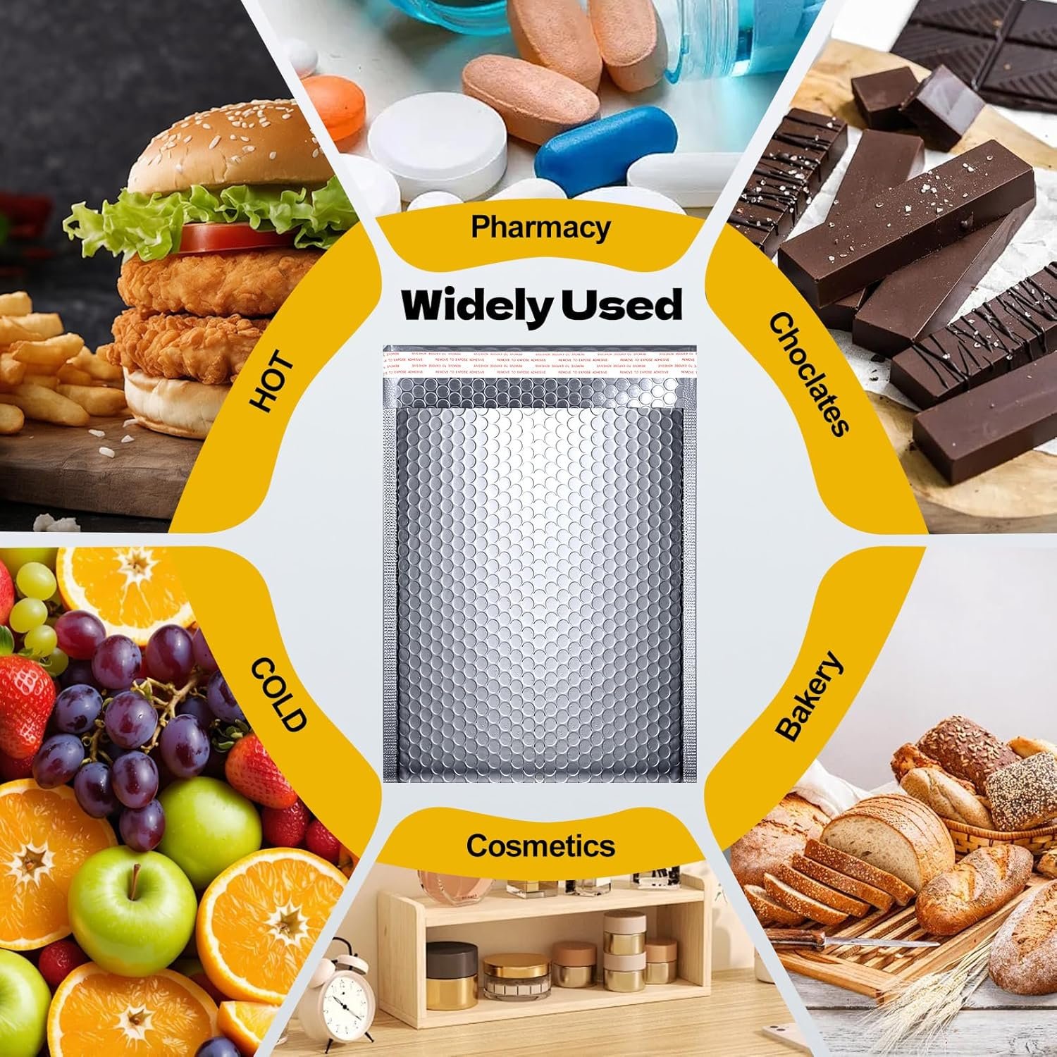 - Temperature Control: The metallic layer helps to maintain a stable temperature inside the mailer, making it suitable for shipping temperature-sensitive items like cosmetics, pharmaceuticals, and food.