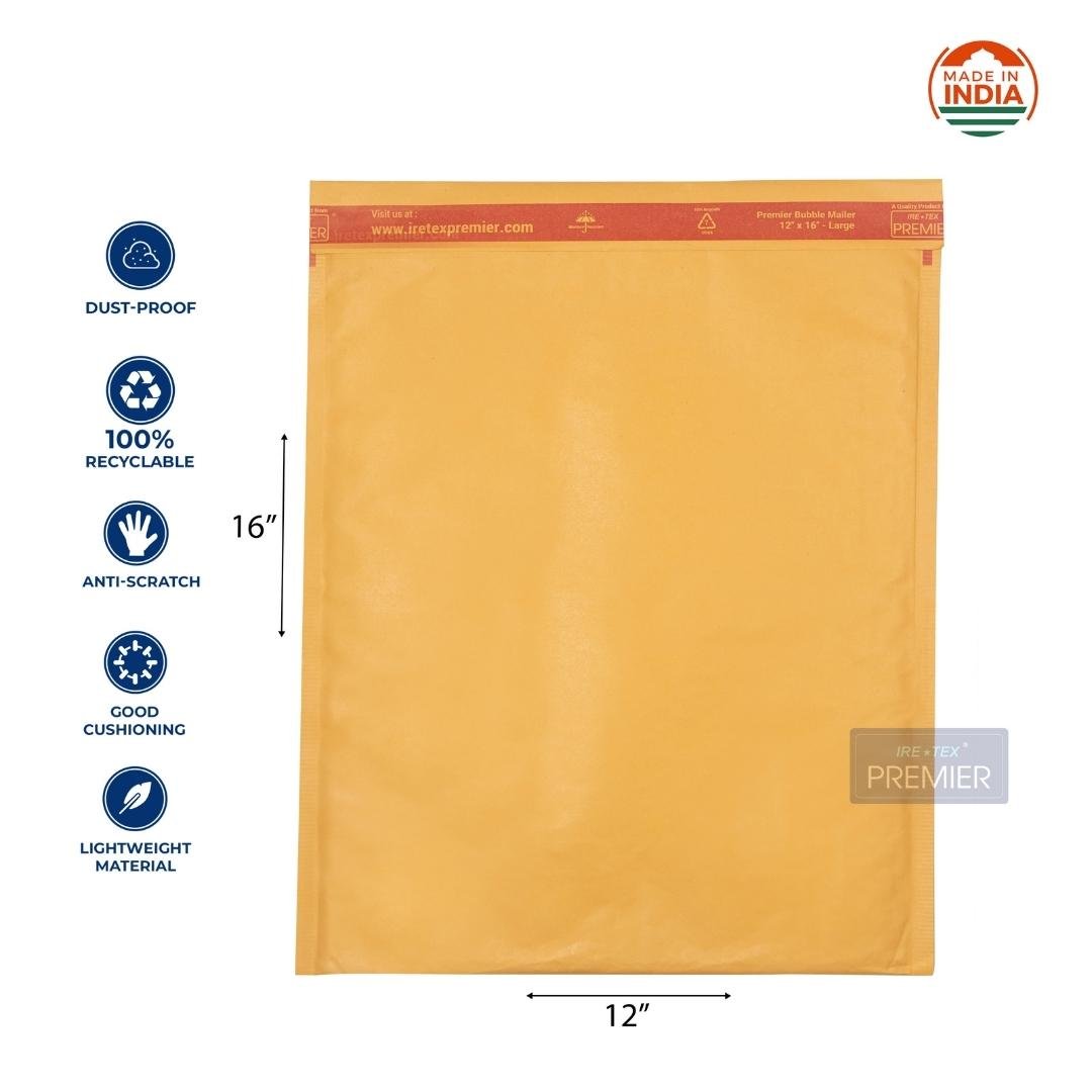12″×16″ Kraft Paper Bubble Mailers & Padded Envelopes. These padded envelopes are made by laminating high-quality, 100% recyclable, air bubble sheets inside 90gsm Kraft paper.